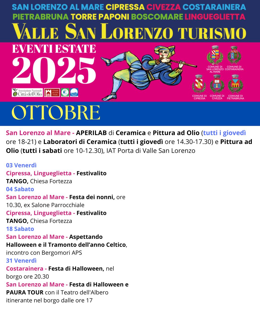 Calendario eventi organizzati nel mese di ottobre dai borghi della Valle del San Lorenzo.